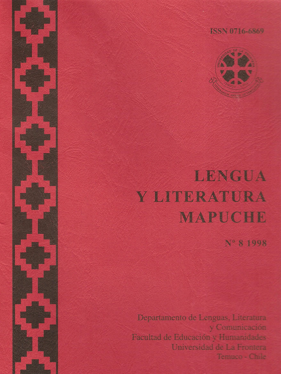 Vol. 8 No. 01 (1998)Tenemos el agrado de presentarles el nº8 de la revista Lengua y Literatura Mapuche, cuya temática continúa excediendo felizmente su denominación, ampliándose a otros campos disciplinarios y a otros pueblos indígenas de nuestra América.