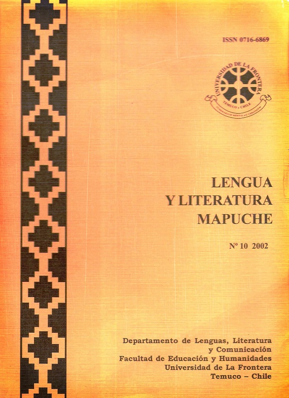 Vol. 10 No. 01 (2002)El presente es un número significativo de la revista Lengua y Literatura Mapuche. Se cumplen con y en él diez números regulares bianuales, además de uno con dos volúmenes y de algunos anexos.