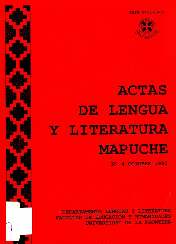 Vol. 4 No. 01 (1990)Este número reúne la mayor parte de las ponencias presentadas en las IV Jornadas de Lengua y Literatura Mapuche, realizadas en el Aula Magna de nuestra universidad entre los días 23 y 26 de octubre de 1990.