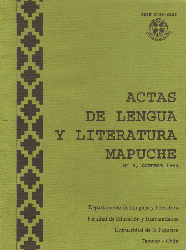 Vol. 5 No. 01 (1992)En estas actas se reafirman algunos rasgos ya presentes en años anteriores y que se relacionan con la preocupación por otros pueblos y su cultura, además del pueblo mapuche; asimismo, se enfatiza la multidisciplinariedad en el enfoque de la lengua y la literatura escrita y literatura oral o etnoliteratura; junto con todo esto, sigue aumentando la participación de personas indígenas que investigan su propia cultura.