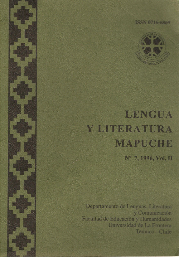 Vol. 7 No. 02 (1996)Al igual que el número anterior, el presente se encuentra dividido en varias secciones, acompañadas por un sistema de viñetas tomadas de la tradición visual mapuche.